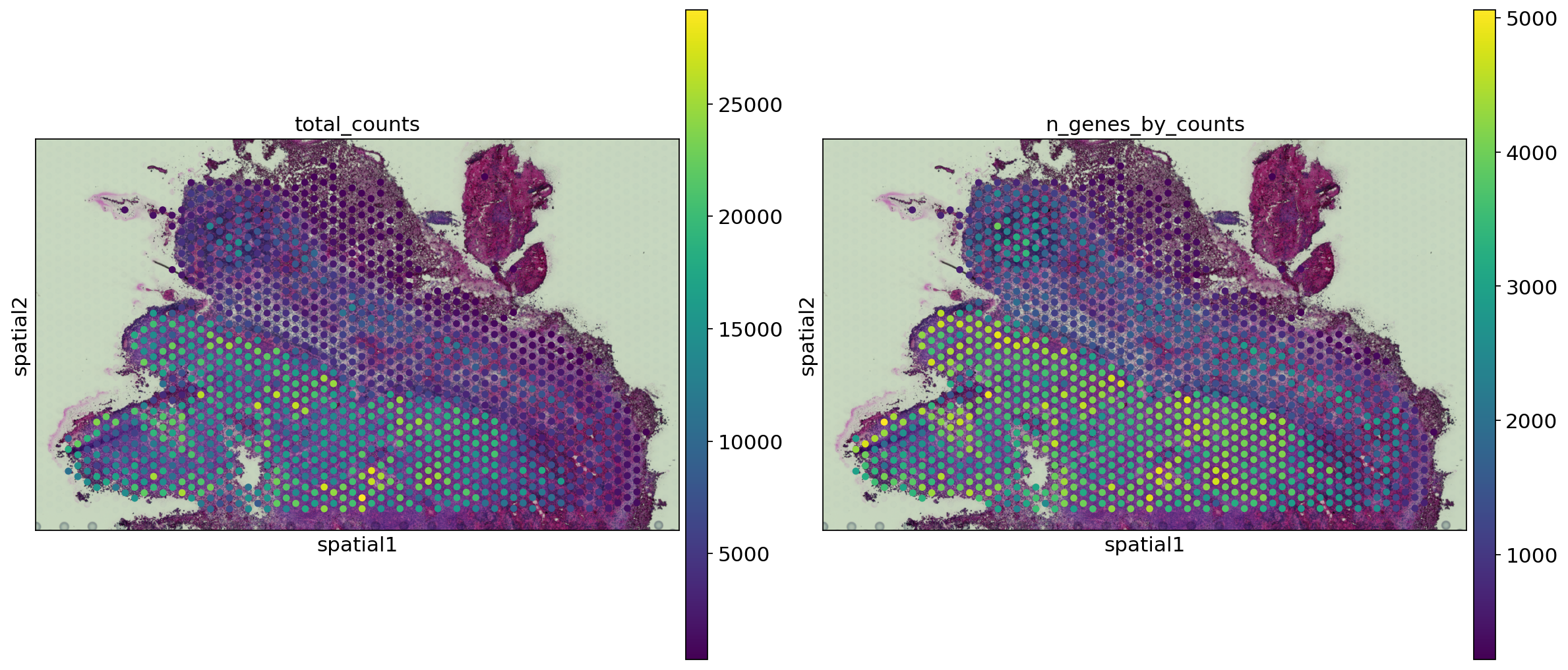 In this notebook, we use Scanpy to take a closer look at some of the results. The Visium data were originally from: